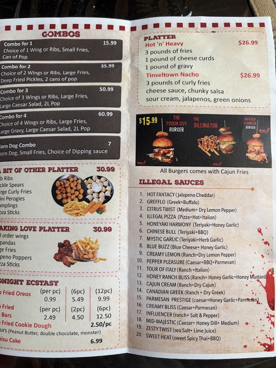 But the menu doesn’t stop at wings. Indulge in their mouthwatering boneless dry ribs and boneless wings, also priced at CA$11.99 per order. Customers rave about the crispy texture and juicy interiors of the wings, which are complemented by bold, tantalizing sauces.